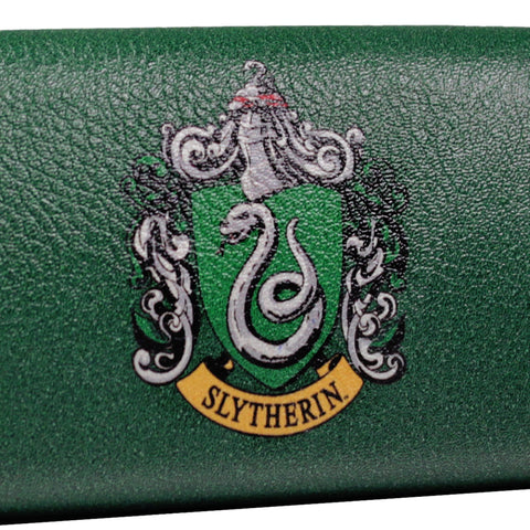 Protect your spectacles whether they're round like Harry Potter's or in a half-moon style just like Albus Dumbledore's with this beautiful glasses case inspired by Slytherin, the Hogwarts house that values ambition, cunning, leadership, and resourcefulness. Featuring a green base colour, this PU-covered case includes a printed house crest on the front as well as a Slytherin logo design on the reverse. The inside is lined with flocked fabric and also contains a printed lens cloth.