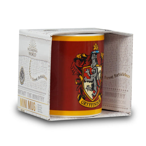 This Harry Potter mini mug is sure to cast a magic spell over your morning brew. Featuring the Gryffindor house crest on a red background and the Harry Potter logo on the back. Gryffindor stands for courage, bravery, nerve, and chivalry, it's perfect for heroes who need a bit of magic - and caffeine - to power through the day. Use to serve espressos or simply display as a collector's item.